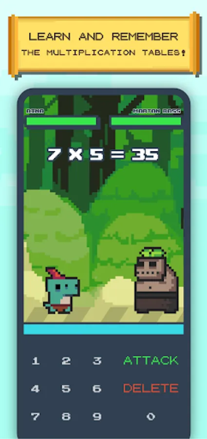 Multiplication Kingdom is an effective way to learn multiplication tables (from 1 to 10) and improve your mental mathematics skills while playing and having fun 🧠. In this times tables game, you can practice speed multiplication tables at different levels, by choosing the most appropriate world to play in. Memorise and quickly retrieve your multiplication tables by battling against your enemies and by collecting stars from all the worlds.