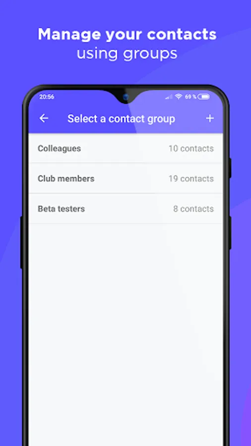 Create and edit your contact groups. Then you can send the right SMS to the right people.