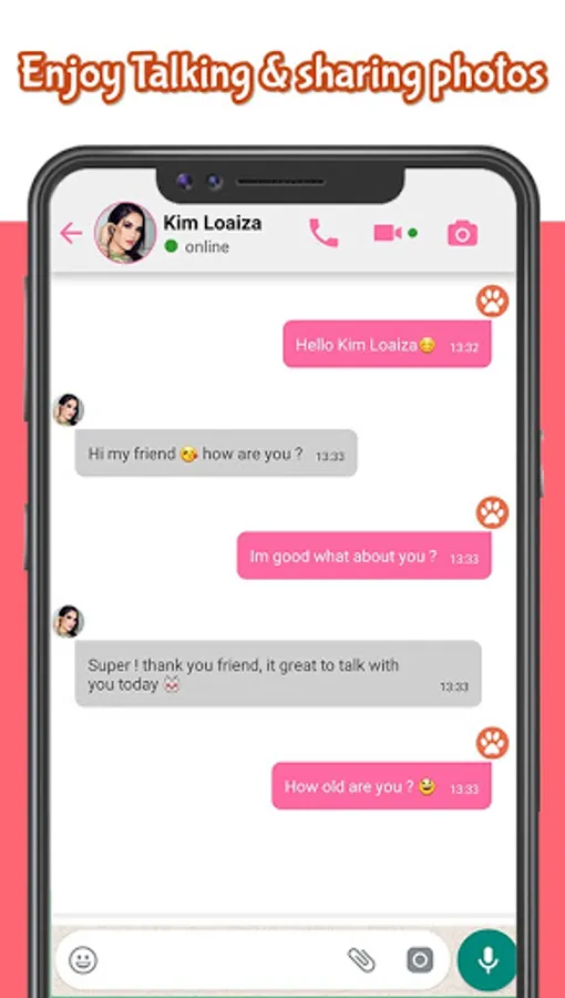 4. join the chat to start calling with Kimberly Loaiza or make a chat discussion with your contact kim Loaiza to ask her some question and sending photo & more !