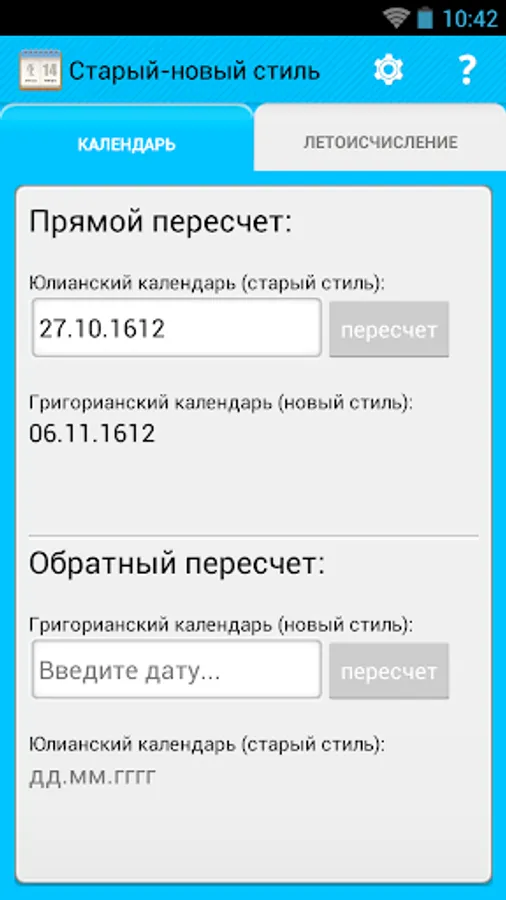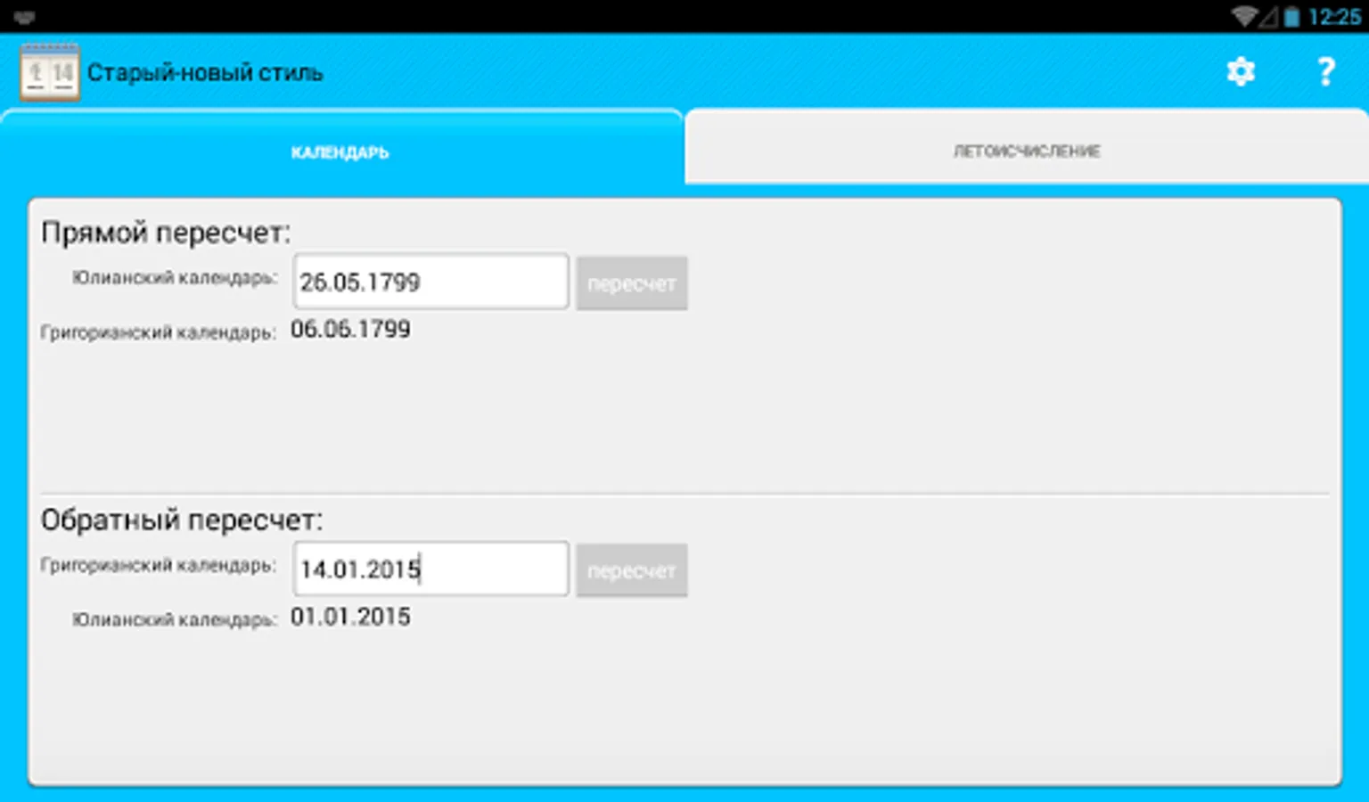 - Translation of the Old Russian chronology of dates ("creation of the world") in the current ("birth of Christ") and vice versa;