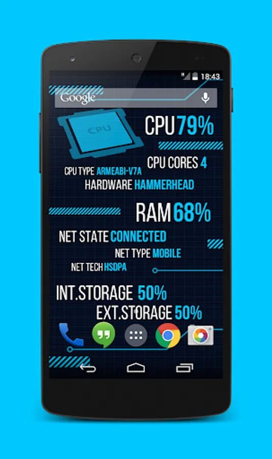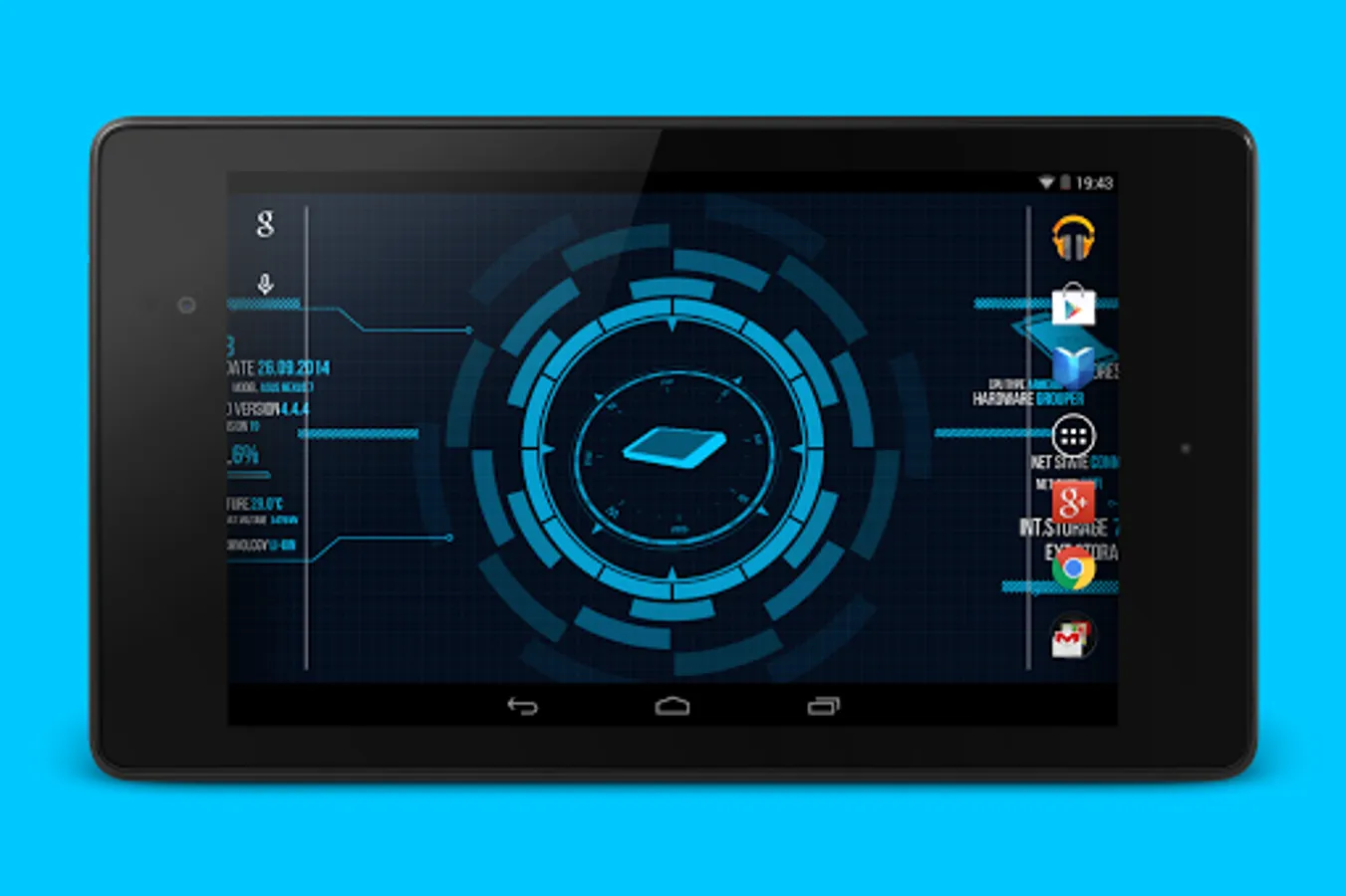 Holo Droid is one of the most amazing live wallpapers on Google Play. It shows you several informations about your mobile device and gives the phone's screen a futuristic look!