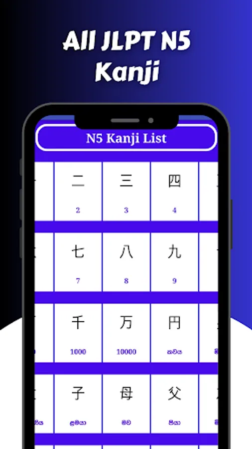 ජපන් භාෂාව මුල් වරට ඉගනගන්නා අය සඳහාම නිර්මාණය වූ සාර්ථක යෙදුමකි. JLPT N5 විභාගය සඳහා සූදානම් වන ඔබට ඉතා පහසුවෙන් බාවිතා කල හැකි ආකාරයට නිපඳවා ඇත.