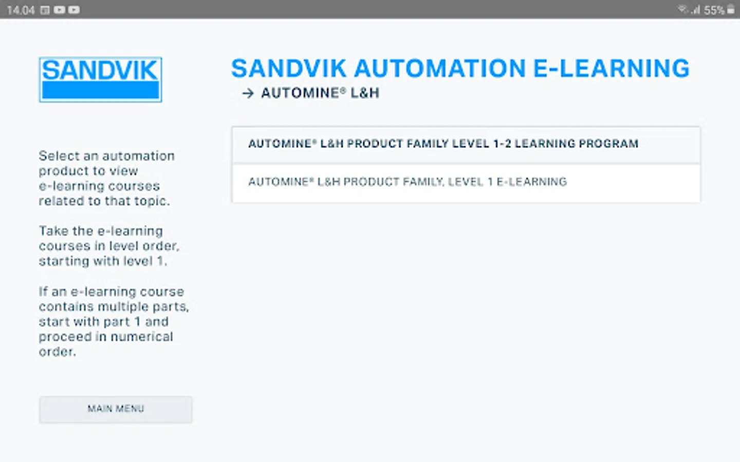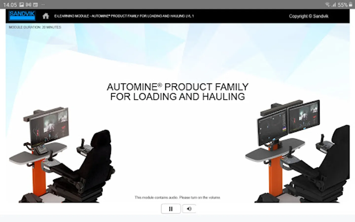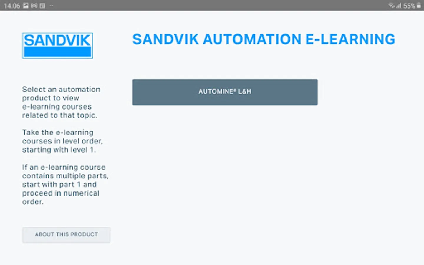 Sandvik Mine Automation E-Learning application intended for locations that cannot use online version of the learning resources.