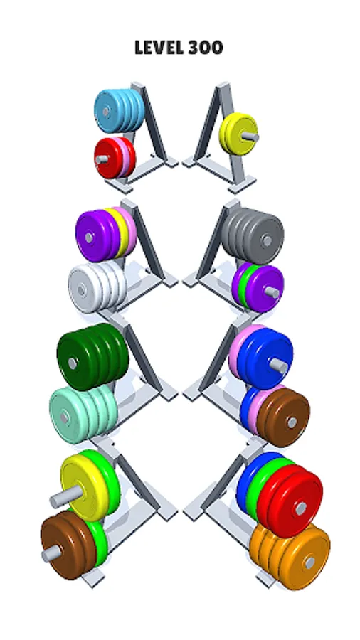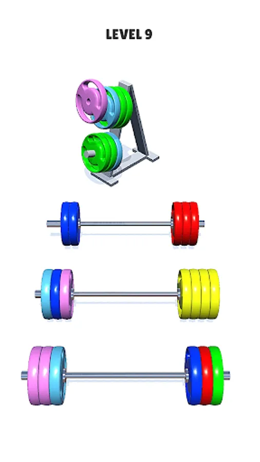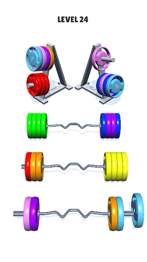 Try to sort the colored plates in the bars and racks until all plates with the same color stay in the same bars and racks.