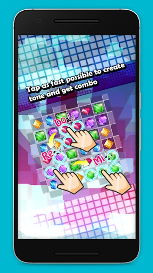 Match gem on every square to destroy all the squares under the gems and get the highest tone from the destroyed gem. Then a magic gem will appear.