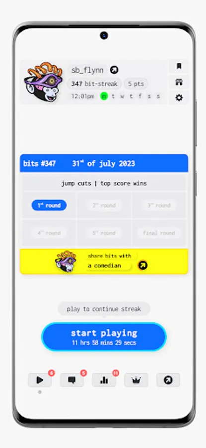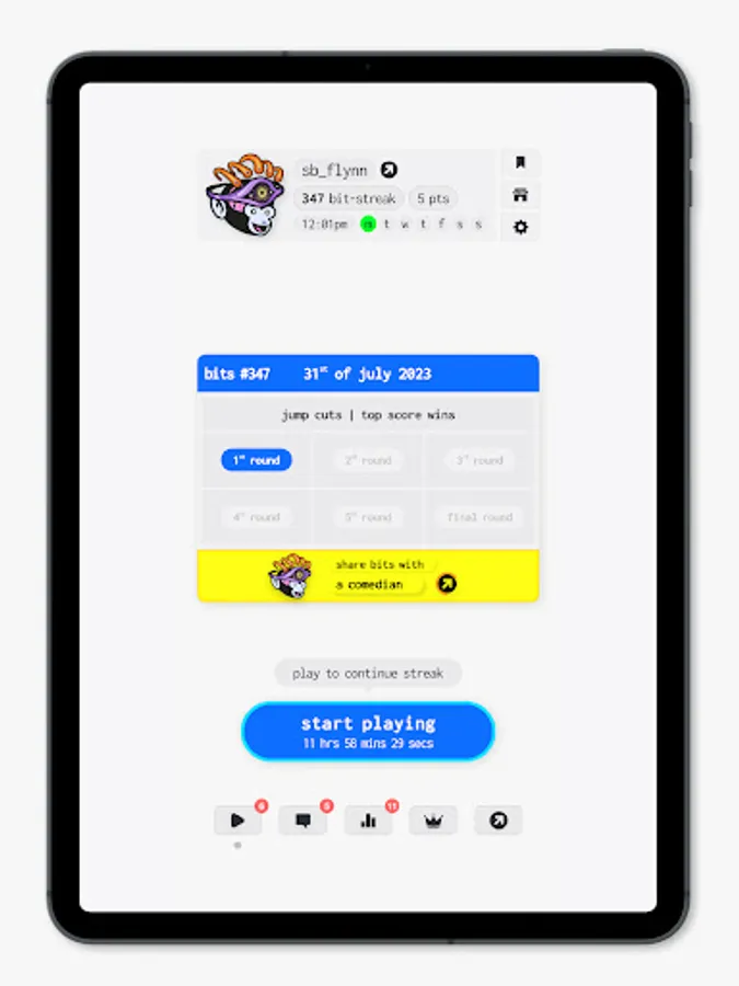 You ONLY get 6 rounds per day... except on Sundays. So you don't waste your time playing on qualtrons all day, go live ya life and get stuff done. Get out there and be your best self, help others and all that. But FIRST play bits in the morning... or at lunch or whatever... then do that other stuff later.