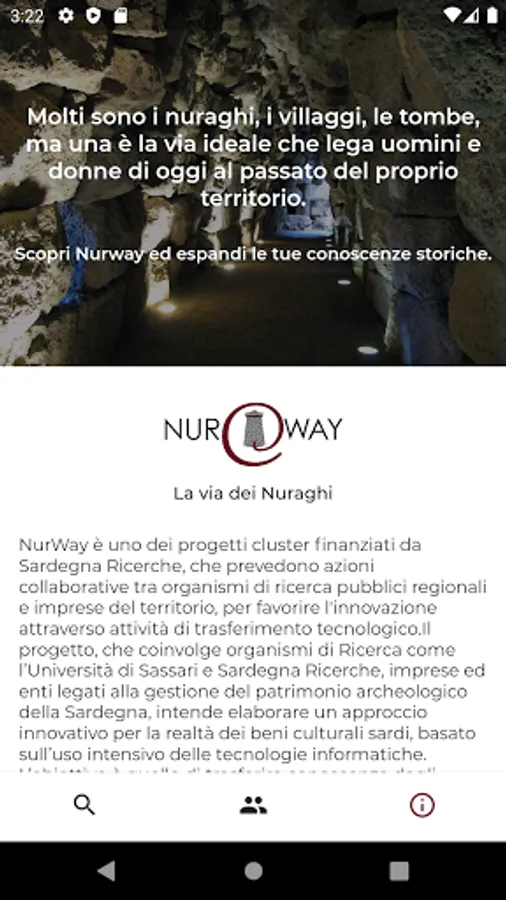 NurWay is one of the cluster projects funded by Sardegna Ricerche, which envisages collaborative actions between regional public research organizations and local companies, to foster innovation through technology transfer activities.The project, which involves research organizations such as the University of Sassari and Sardinia Researches, companies and entities related to the management of the archaeological heritage of Sardinia, intends to develop an innovative approach for the reality of Sardinian cultural heritage, based on the intensive use of information technology.