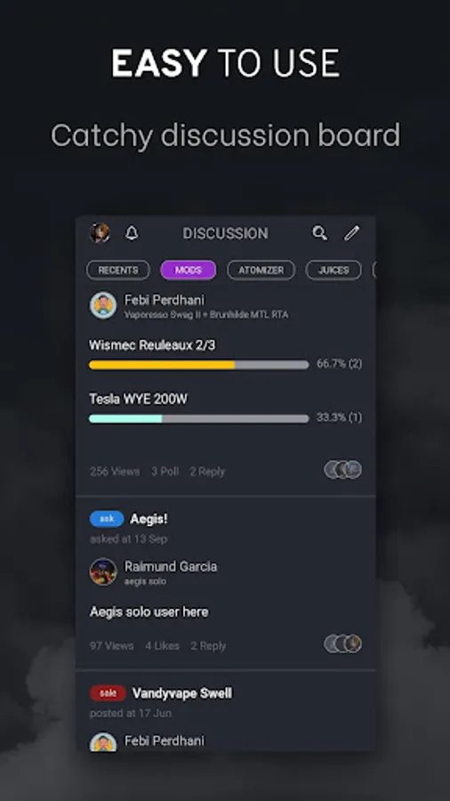 "Hi vaper .. now OHMVaping also has discussion featured"