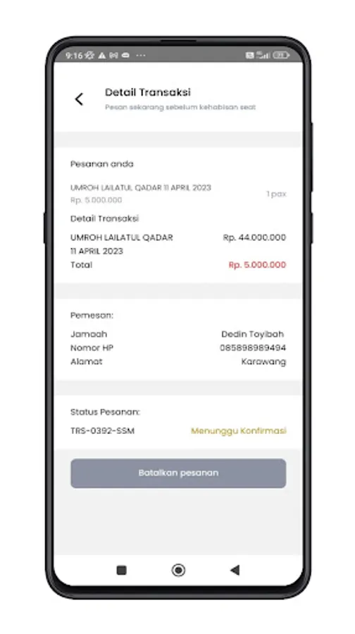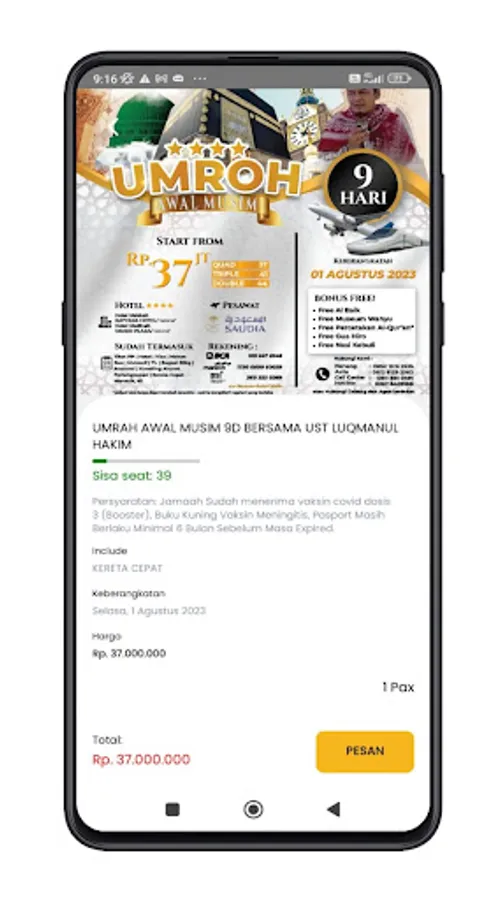 In addition, users can also monitor the status of their orders through the application, including information regarding flight tickets, accommodation, and travel schedules while in the Holy Land. The Sanema Tour application also provides a feature for making payments online, so users don't have to bother making payments in person at the office.