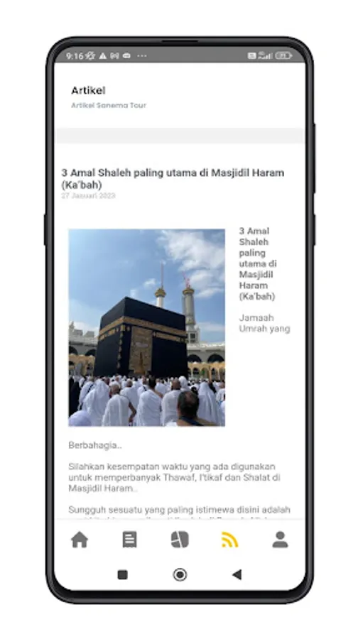 In the Sanema Tour application, users can choose the Umrah package they want, view detailed travel itineraries, select departure dates, and easily order packages. This application also provides information regarding fees, facilities provided, and recommendations for lodging in Mecca and Medina.