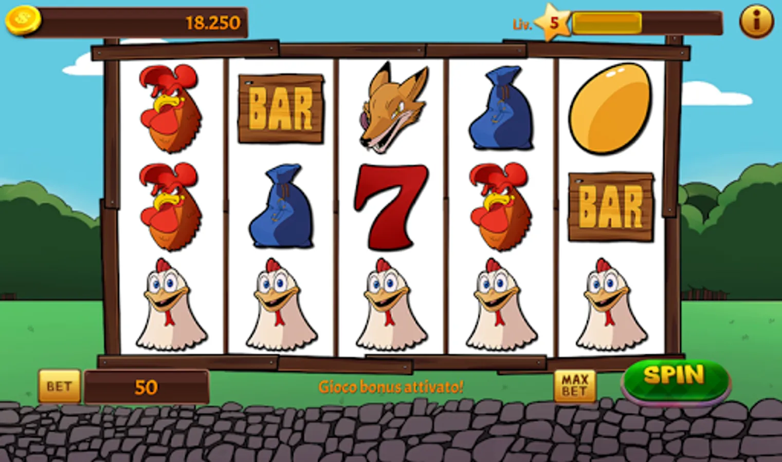 Win the golden egg bonus with this fantastic slot machine simulation!