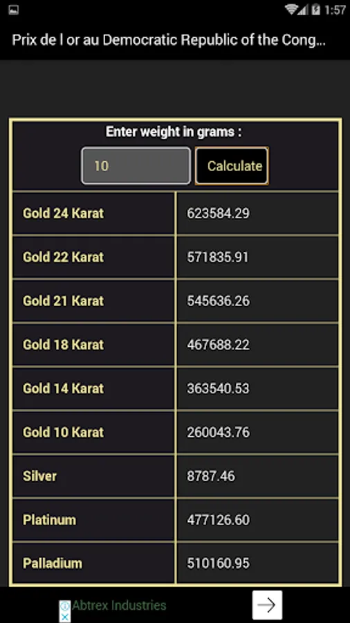 Hope you like the Gold price in Democratic Republic of the Congo Today App