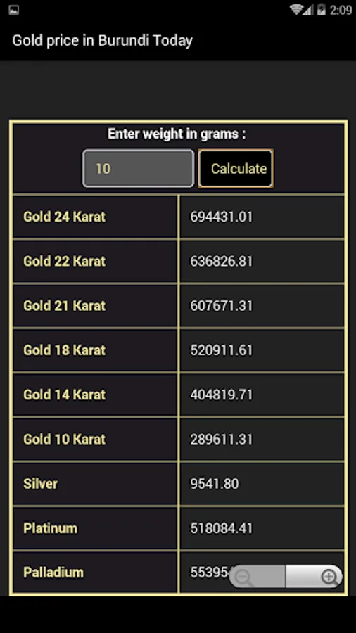Check latest gold, Silver, Platinum and Palladium price in Burundi