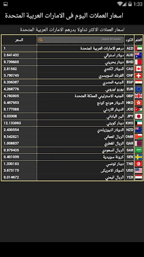 The application can be easily browsed to see currency rates in the United Arab Emirates