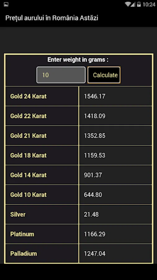 Check Gold, Silver, Platinum and Palladium prices in Romania