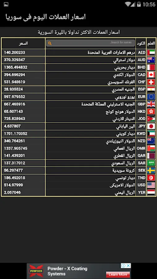 Currency exchange rates today in Syria is an application that enables you to see the exchange rate of the Syrian Pound against 155 other currencies around the world