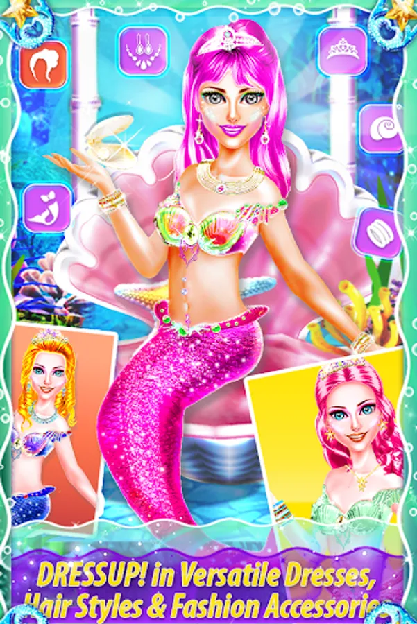 Hello girls! dive deep into the amazing underwater water world.San Games presents all my little mermaid & a secret magical mermaid story.Princess mermaid needs your help! Some corrupt people are polluting her secret magical underwater kingdom by dumping industrial waste and garbage in the ocean.save & clean the underwater environment & rescue lovely home for fish.Give Little mermaid under water spa & be a mermaid super stylist.Enjoy romantic real mermaid makeup salon with dress up in this fashion game.