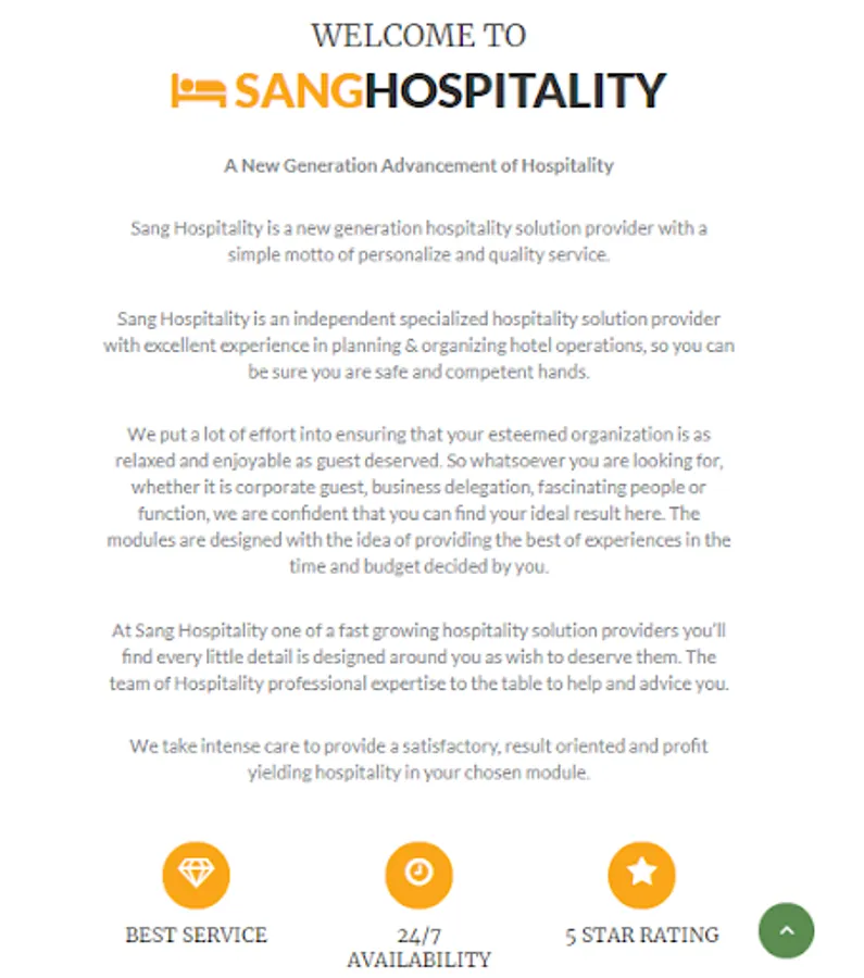 Sang Hospitality is a new generation hospitality solution provider with a simple motto of personalize and quality service.