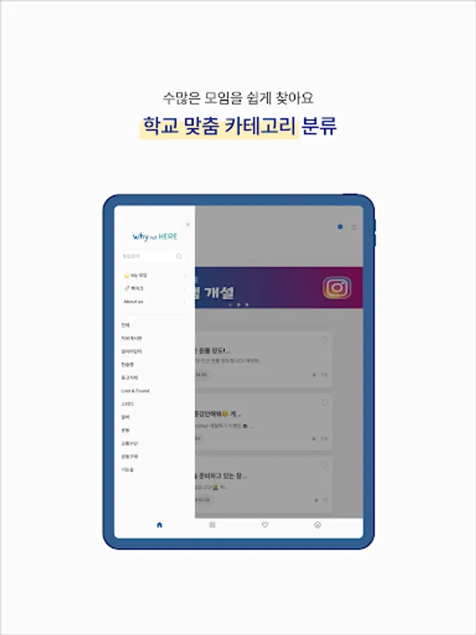 It is subdivided into various categories such as project, religion, part-time job, seeking/providing, etc., so you can easily conduct small meetings unique to Handong Global University :)
