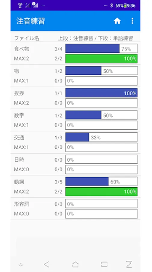 There are two modes, word practice and Bopomofo practice.