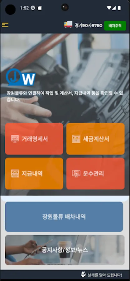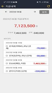You can check the details of the dispatch settled by Jangwon Logistics in the app.