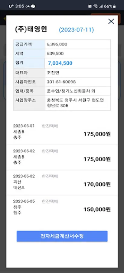 You can easily issue an electronic tax invoice with one click after checking the dispatch details.