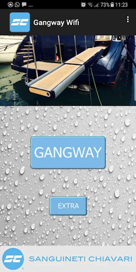 The interface is equipped with a router WiFi which enables the coverage up to a range of 20m. The Smartphone receives the signal and it connects just like a normal WiFi network protected with a password. It is an independent system which does not require the WiFi of the boat to work. Once it is connected to the network, thanks to the Sanguineti gangway Application, it is possible to use the telephone just like a simple remote control.