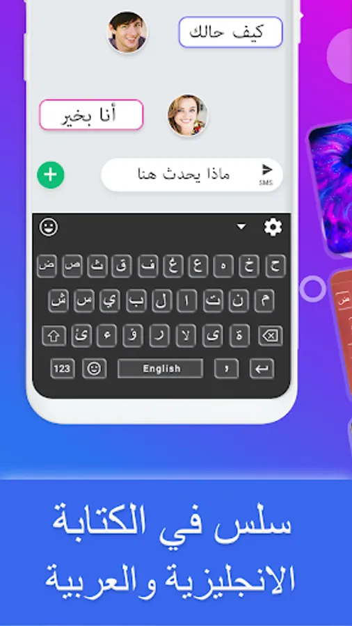 Easy Arabe keyboard works as dual keyboard with Arabic and English Keyboard separately. You can type both arabic and english language. Unique & futuristic Arabic English language keyboard have awesome features that provide good feelings while chatting with friends due to its themes and emojis. You can use Teclado do idioma árabe to type messages, emails, texts and Arabic language quotes. English and Arabic keypad both works separately. You can easily switch between Arabic and English Language directly from keyboard