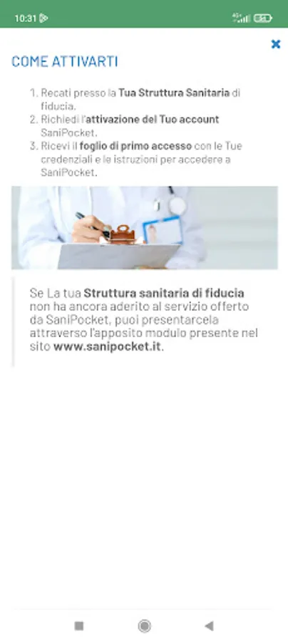 >> To use SaniPocket you must have received the system access document and identification QR code from your healthcare facility. Without this document it is not possible to use any functionality of the app. <<