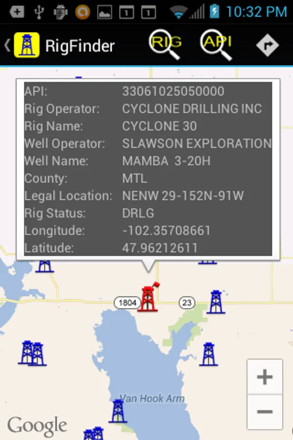 * RigFinder is a mapping application which locates oil & gas drilling rigs in North Dakota - Bakken