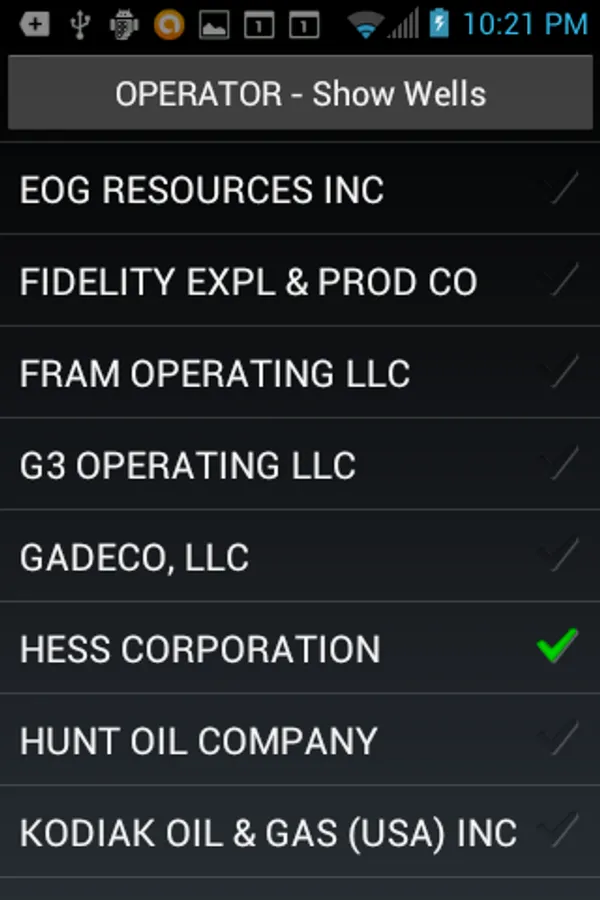 * Search/sort by Rig Name, API Number, Well Name or Well Operator.