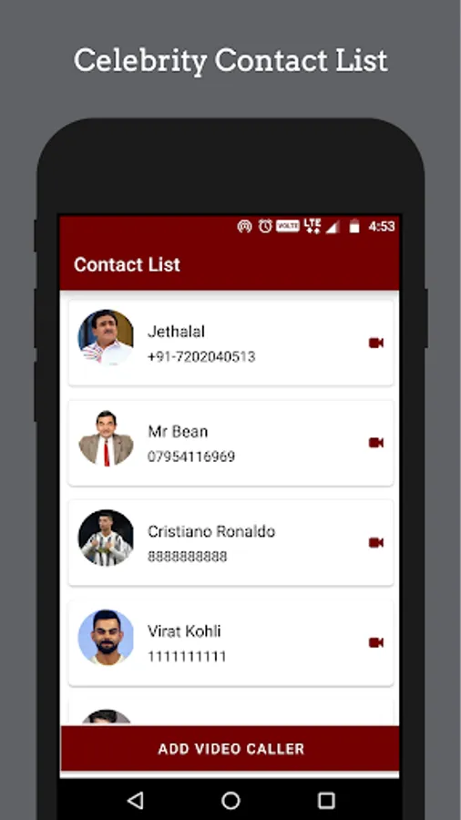 Fake Video Call With Celebrity lets you fake video chat with Jethalal, Virat Kohli , Cristiano Ronaldo,Katrina Kaif, Sunny Leone  and many more. Just take screenshots and flex on your friends.