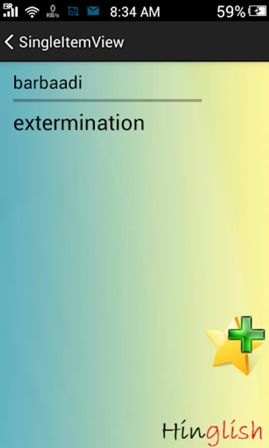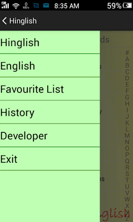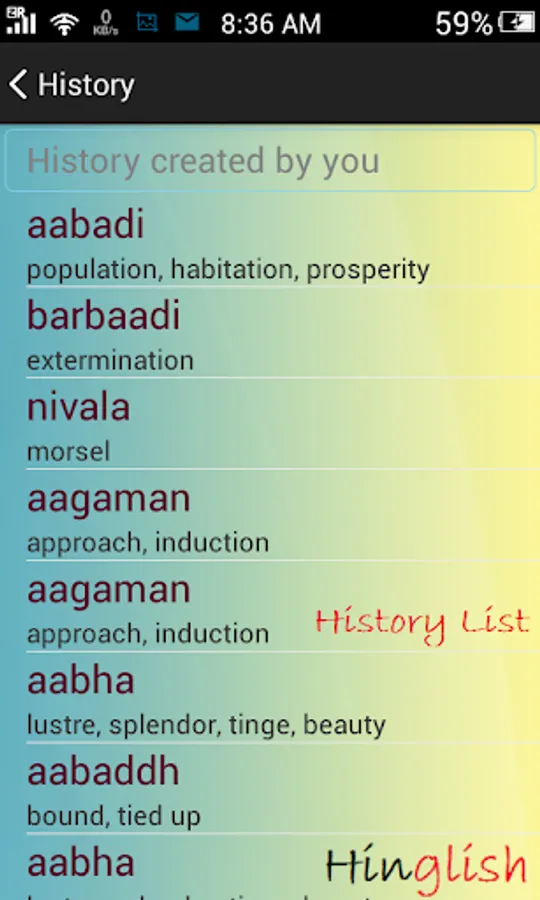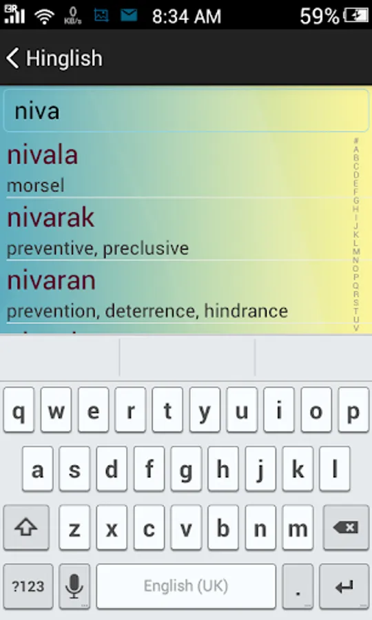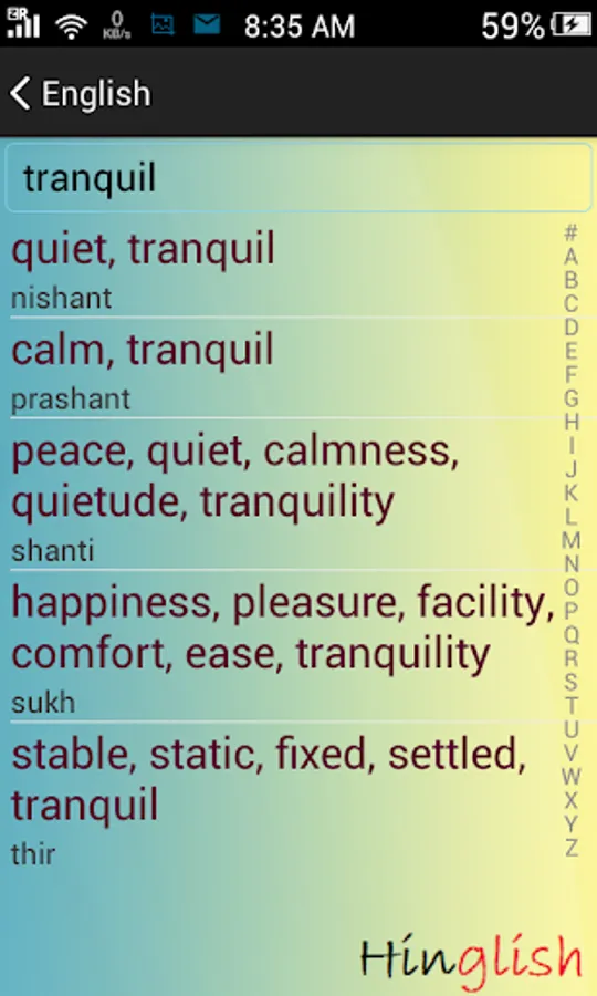 This is the First Hinglish dictionary which has 50k local words in the OFFLINE mode & Hindi in English.