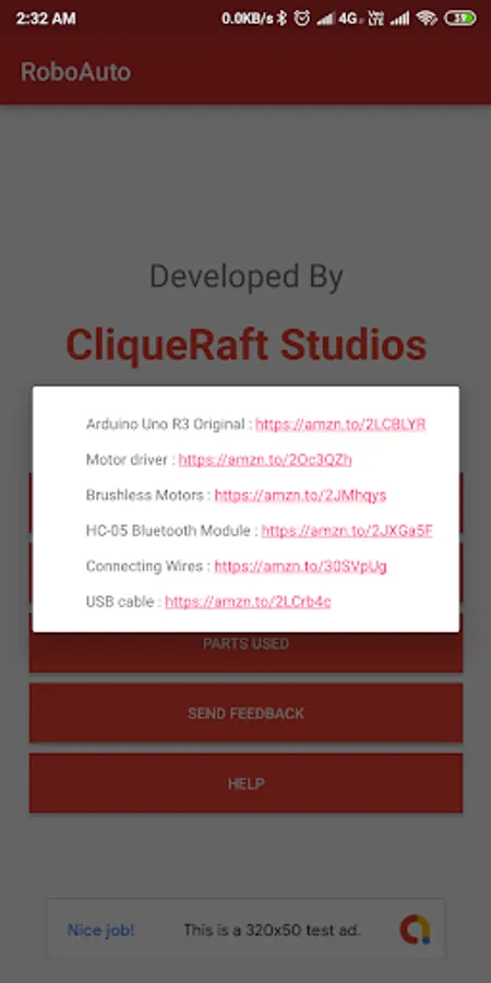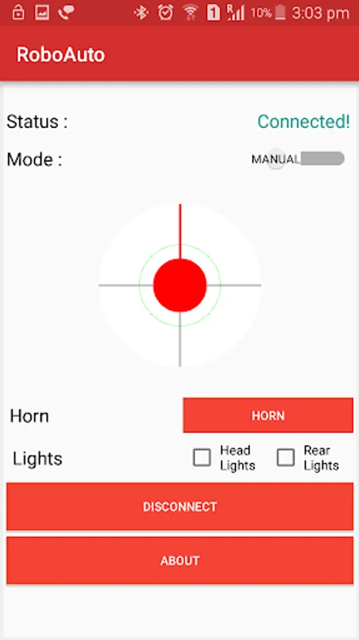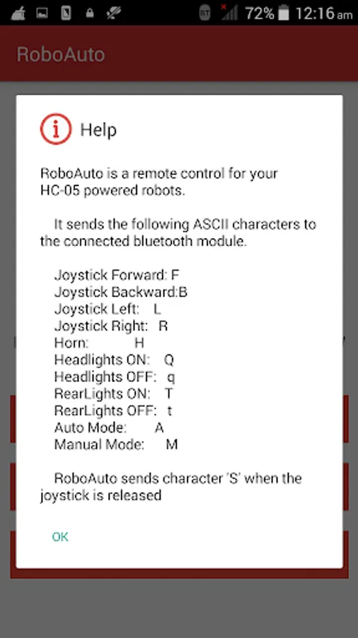 RoboAuto also has additional buttons like Mode, Head Lights, Rear Lights and Horn which you can use as specified or whatever your creativity demands. The characters sent by these buttons have been specified in the help menu.