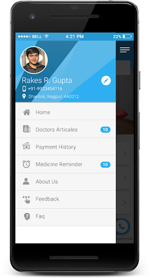 6) At Patient side, patient have facilities like my doctor option, emergency call, ambulance no, appointment booking for online as well as offline as per their convenience.