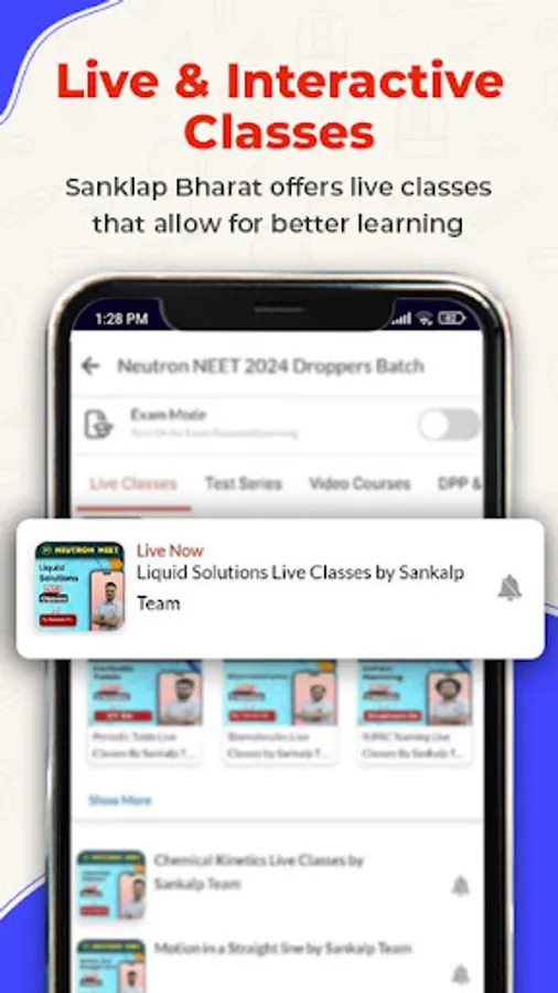 We provide holistic preparation by giving LIVE classes, Test series, study materials and Books for JEE/NEET preparation. Additionally our App provides free quizzes, updates and doubt solutions by highly experienced subject experts.