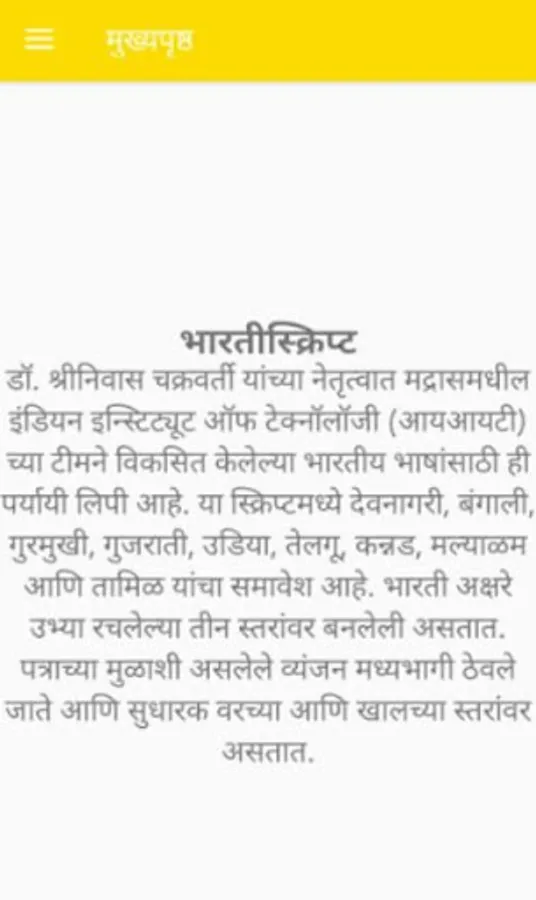 Bharatiscript is designed to be the common script for Indian people. It is a simple and easy script which can be learned anywhere. Especially for Marathi users, this app will prove helpful in learning Bharatiscript.
