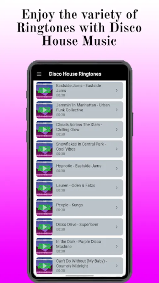 If you want to personalize your device, it contains great mixes and a variety of vocal nu disco songs that you can modify on your android phone as message tones.