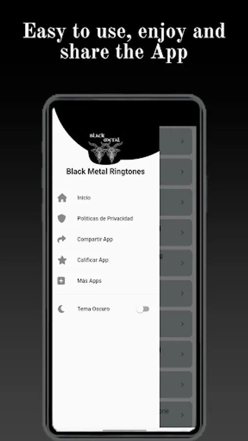 If you want to have your personalized device with great black metal tones, this app offers you a great variety of music as it contains excellent mixes and a wide variety of sounds of black metal songs that you can modify on your Android phone as message tones.