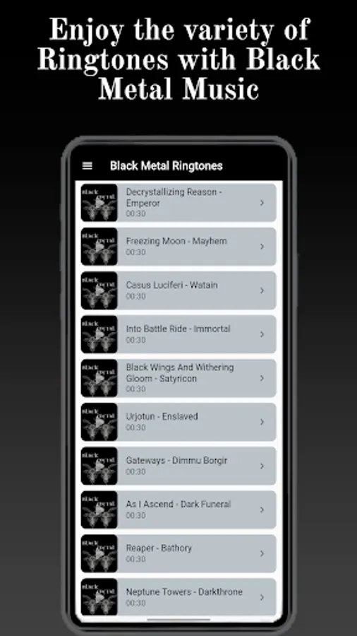 Download the best black metal music ringtones now for free, these great instrument sounds and effects that make this genre unique, the black metal app has features that allow you to set free ringtones for calls, alarms and notifications.