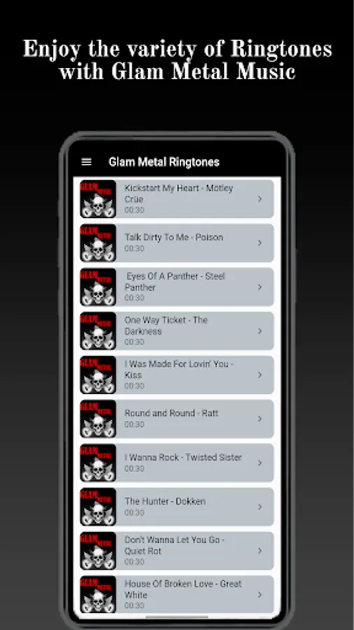 If you want to personalize your device, it contains great mixes and a great variety of glam metal songs with a great mix of 80s metal that you can modify on your Android phone as message tones.