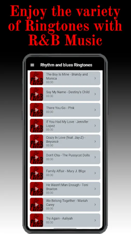 It contains ringtones with sounds of the best r & b soul music that will make your Android device unique in its notifications, alarms or calls.