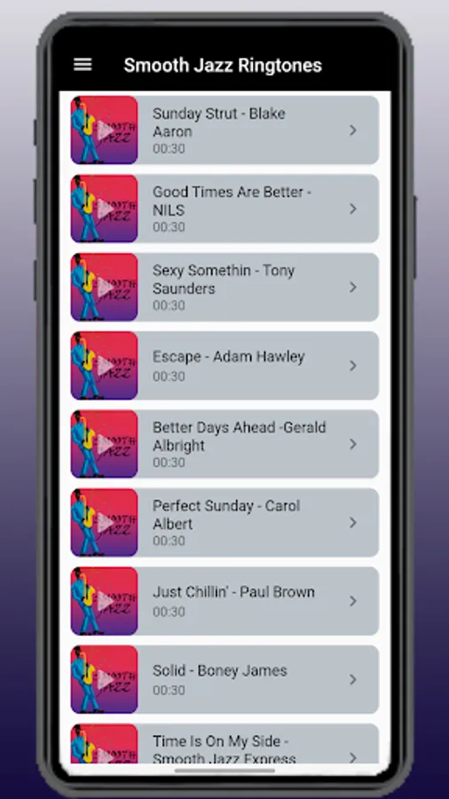 Our App contains a great variety of ringtones with sounds of the best of smooth jazz music that will make your Android device unique in its notifications, alarms or calls.