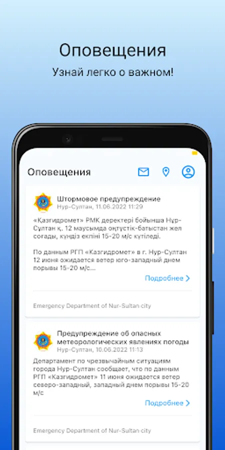 Our notifications, unlike traditional SMS, come almost instantly. With us, you will learn about the cancellation of classes in schools, changes in the epidemiological situation, closures of highways and other natural disasters in your region in time.