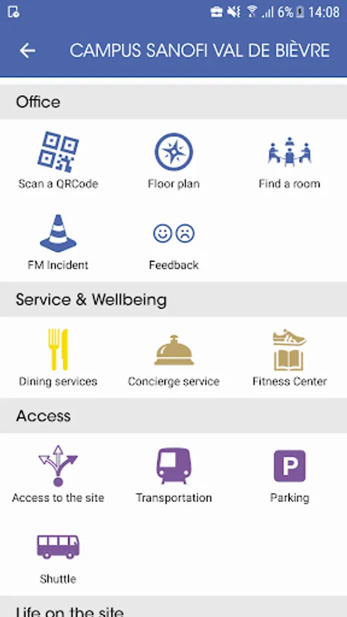 • Useful numbers, transportation, site access, neighborhood services, mail center, FM incident, etc.