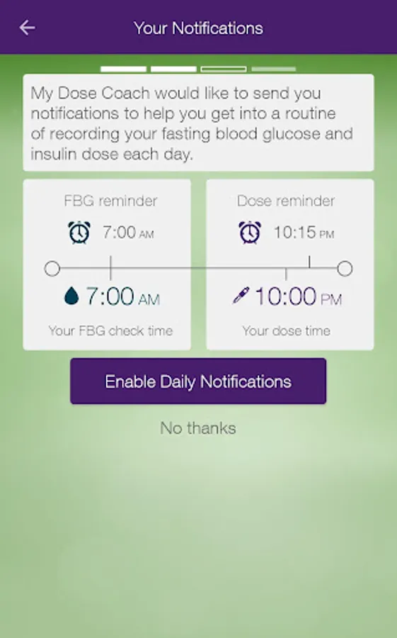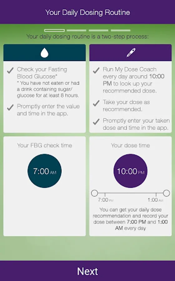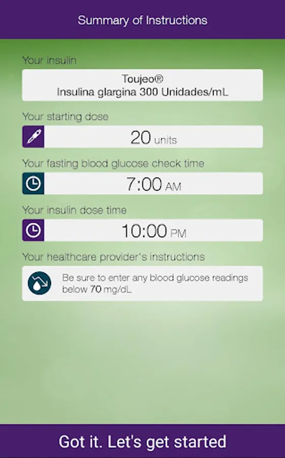 My Dose Coach™ is designed for adult patients who have type 2 diabetes and who have been prescribed once-daily long-acting basal insulin or long-acting basal insulin plus glucagon-like peptide-1 (GLP1) receptor agonist (if available in your country) by their healthcare provider. To use My Dose Coach™, your healthcare provider must be registered in the program and send you a dose plan. You will then be able to use My Dose Coach™ as an aid to track your fasting blood glucose levels and adjust your dose of long-acting basal insulin or long-acting basal insulin plus glucagon-like peptide-1 (GLP1) receptor agonist (if available in your country), based on your healthcare provider's plan to help you work toward your target glucose level.