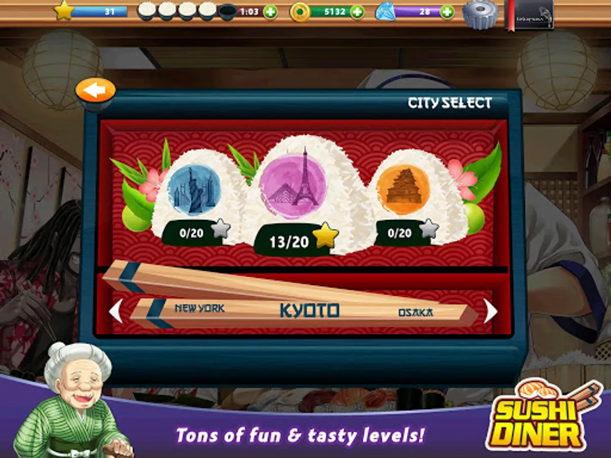 Each level presents a unique new challenge, from collecting enough tips to serving delicious sushi roll, all within the time limit! Adapt your cooking strategy to beat the challenges! Beat the Japan boss levels and become the best sushi chef!