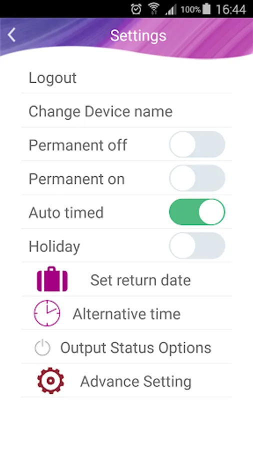 There are 4 operating modes, Auto, Permanent off, permanent on, and holiday. There are also advance and boost functions.