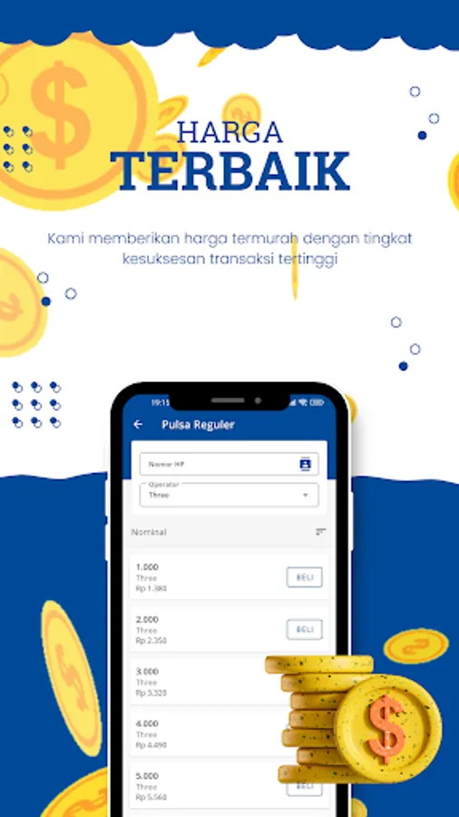 Top up pulses to use yourself, family / sell to friends at the best capital price. Credit for all operators (Axis, Indosat, Smartfren, Telkomsel, Three, XL) is available.
