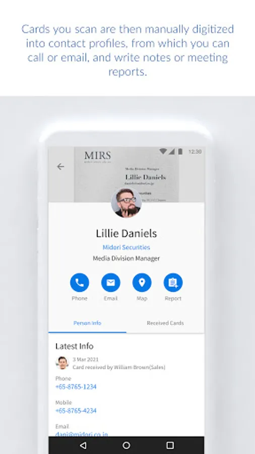*Business card scanning with 99.9% digitization accuracy, shared companywide*